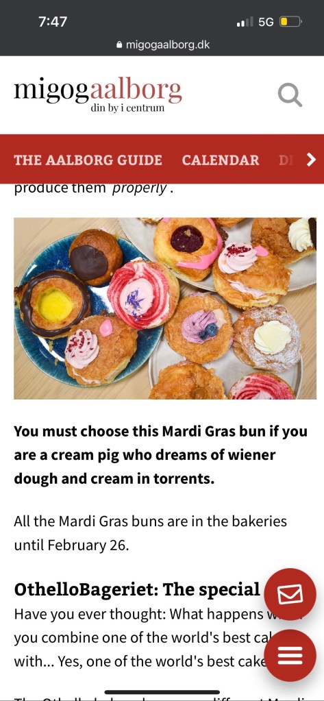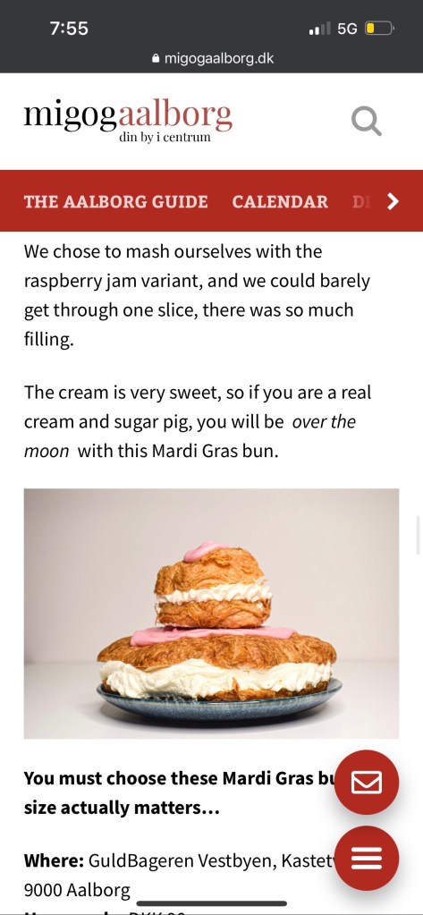 Ian and I were reading about the best places to find Fastelavn Boller in Aalborg. We were in a fit of giggles over the Google translation of the article. Deep questions were asked such as, “are you a cream pig?”, “do you dream of weiner dough”, and the oft-pondered “does size matter?”. Oh dear, just writing that I am once again dissolving into unattractive snorts of hysteria. I fear my husband and I are hopelessly immature.